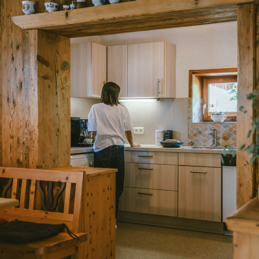 Nach einem aktiven Tag in den Bergen gibt es nichts Schöneres, als es sich vor dem knisternden Holzofen gemütlich zu machen. Der offene Wohnraum ist der perfekte Ort für gesellige Abende.